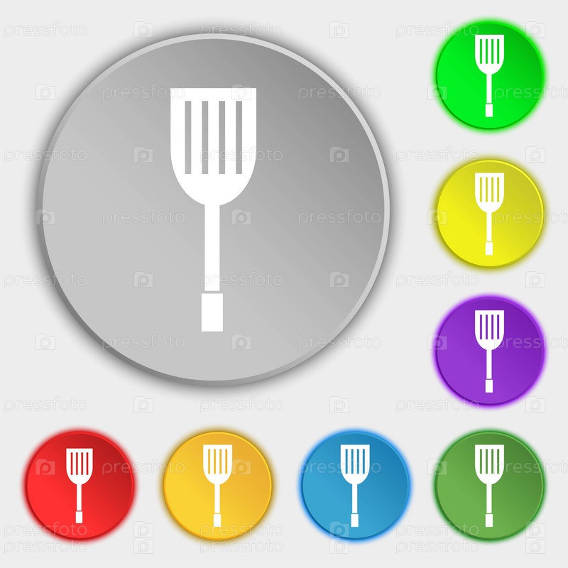 Кухонные приборы значок знак. Символы на восьми плоские кнопки. Вектор