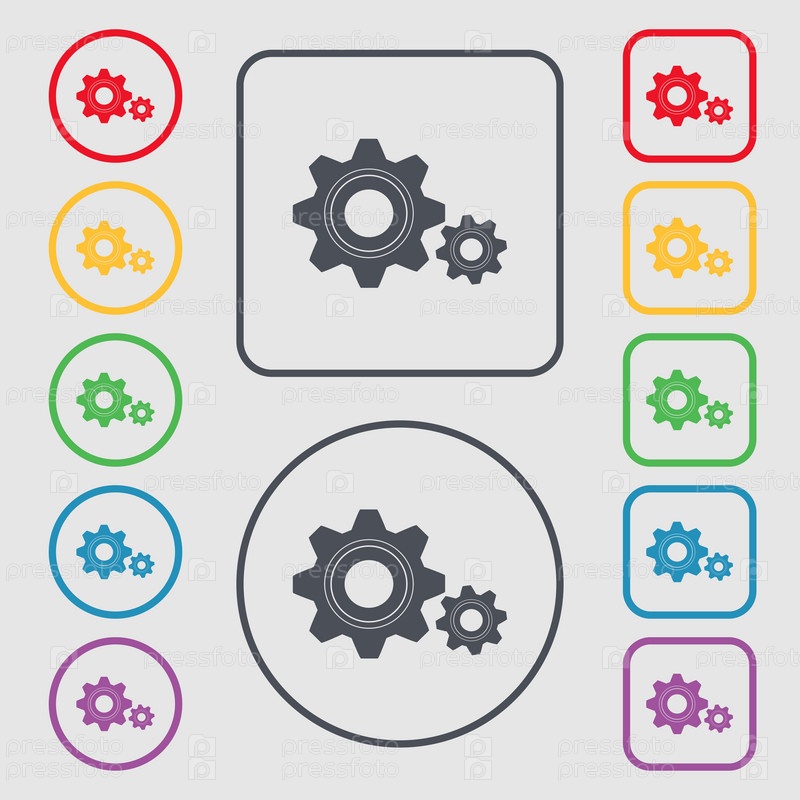 Винтик параметры знак значок. Зубчатая шестеренка. Символы на круглых и квадратных кнопок с рамкой. Вектор
