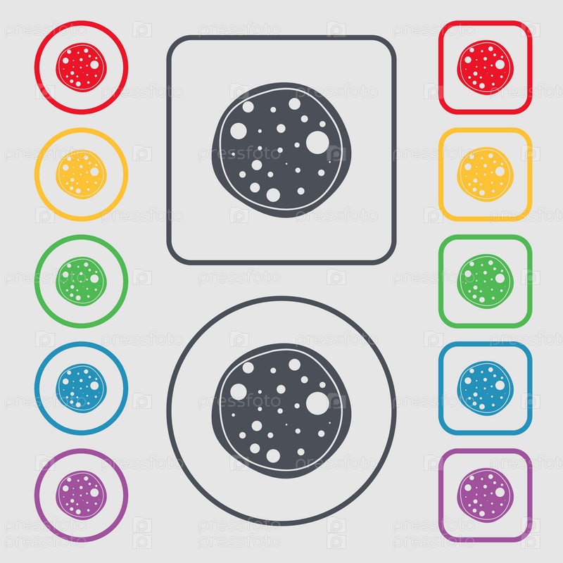 Пицца значок. Символы на круглых и квадратных кнопок с рамкой. Вектор