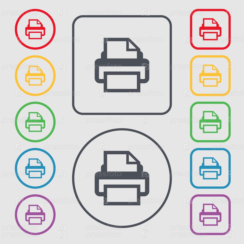 Распечатайте изображение знака. Символ печати. Символы на круглых и квадратных кнопок с рамкой. Вектор