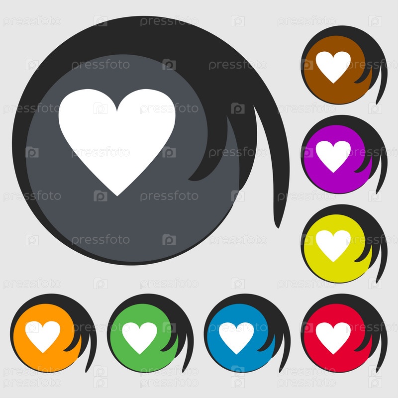 Сердце знак значок. Символ любви. Символы на восьми цветных кнопок. Вектор