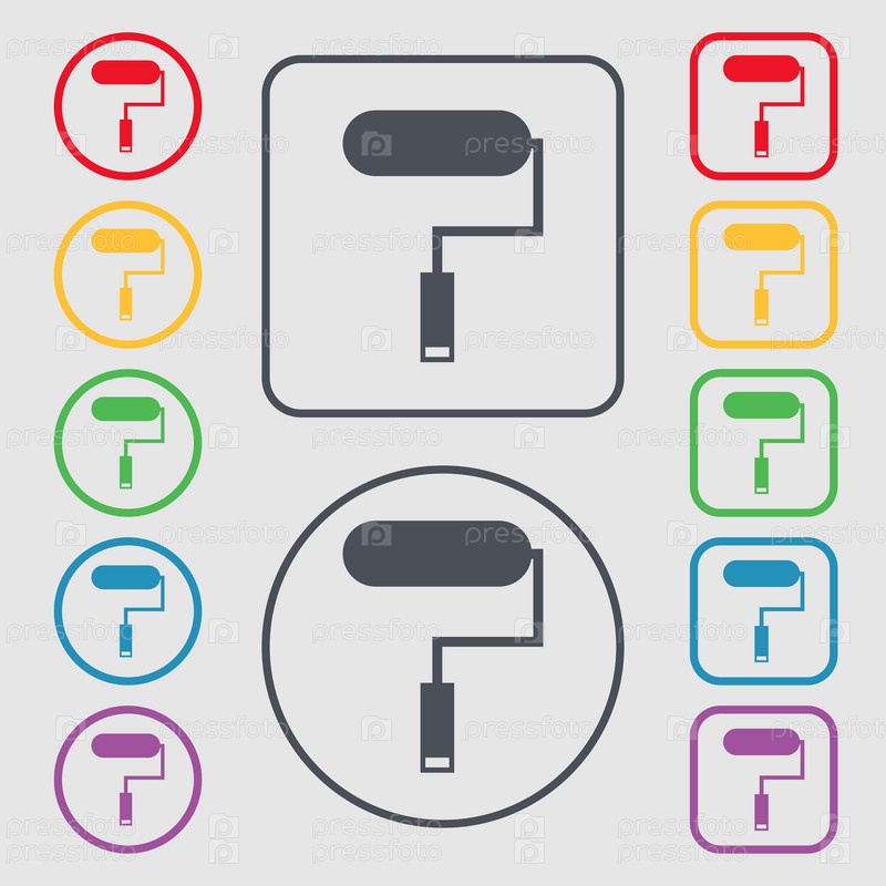 Краской валик знак значок. Значок инструмента живопись. Символы на круглых и квадратных кнопок с рамкой. Вектор