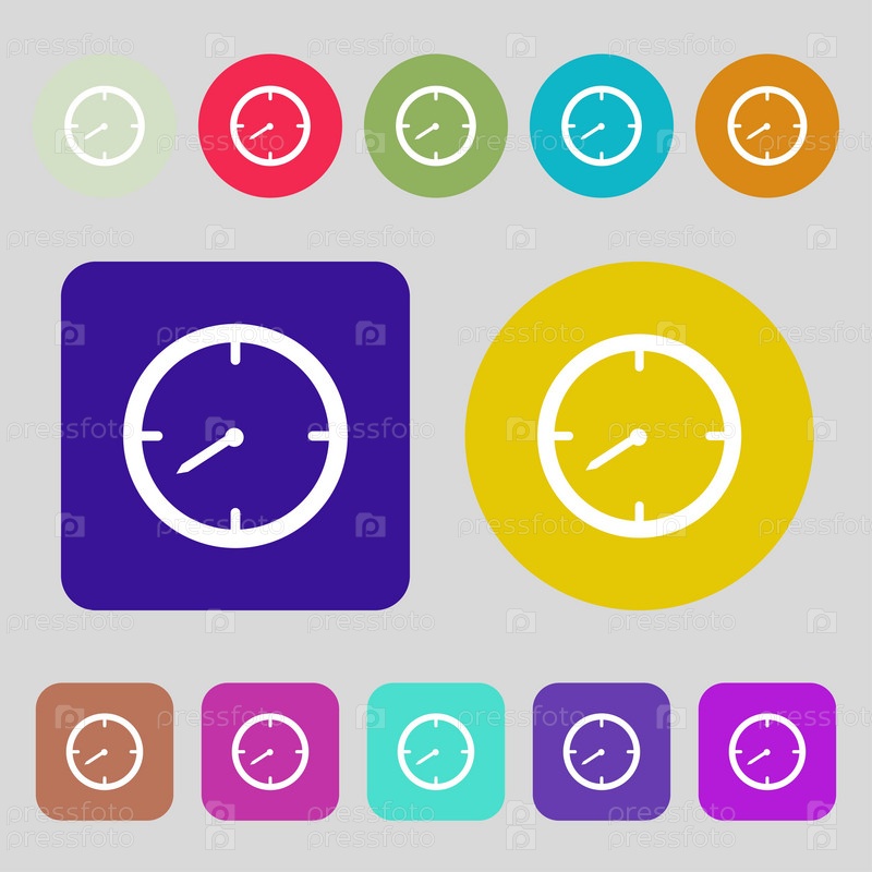 Изображение знака таймера. Секундомер символ. 12 цветных кнопок. Плоский дизайн. Вектор