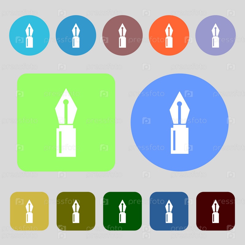 Ручка знак значок. Редактирование содержимого кнопки. 12 цветных кнопок. Плоский дизайн. Вектор