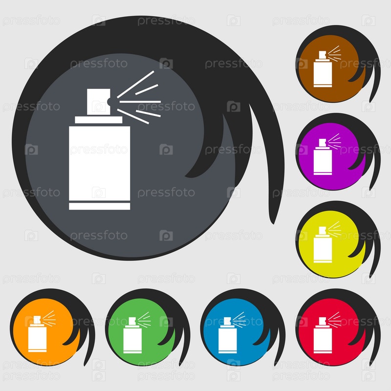 Граффити спрей может подписать значок. Аэрозольные краски символ. Символы на восьми цветных кнопок. Вектор