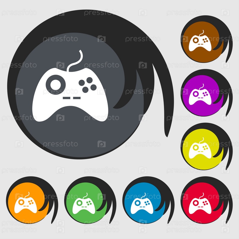 Знак иконка джойстика. Видео игры символ. Символы на восьми цветных кнопок. Вектор