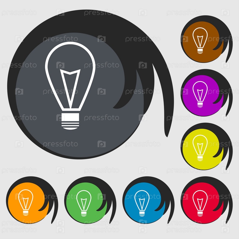 Свет лампы знак значок. Символ, идея. Символы на восьми цветных кнопок. Вектор