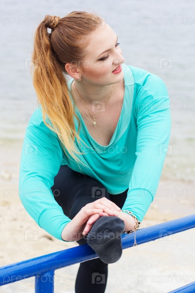 Балерина, делать растяжку возле моря