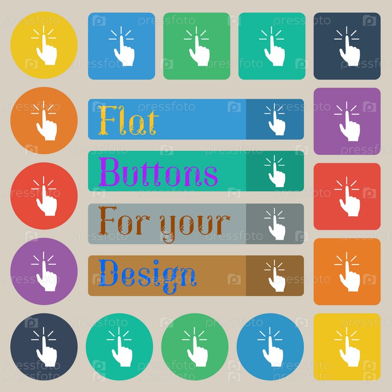 Здесь знак значок руки. 20 цветных кнопок. Вектор