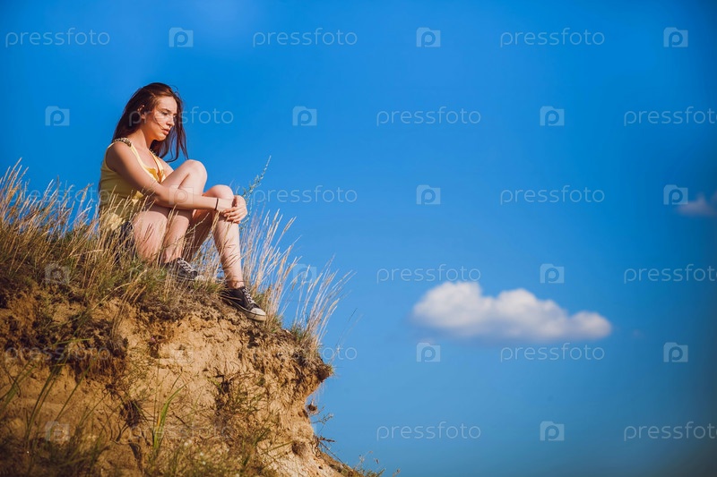 Женщина сидит на вершине