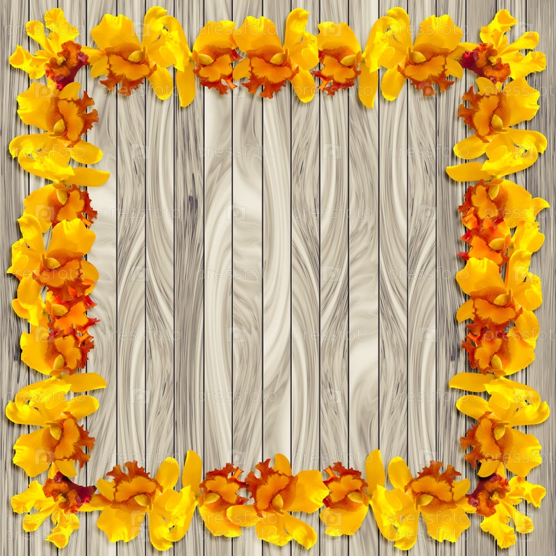 Текстура деревянных планок с рамкой орхидей
