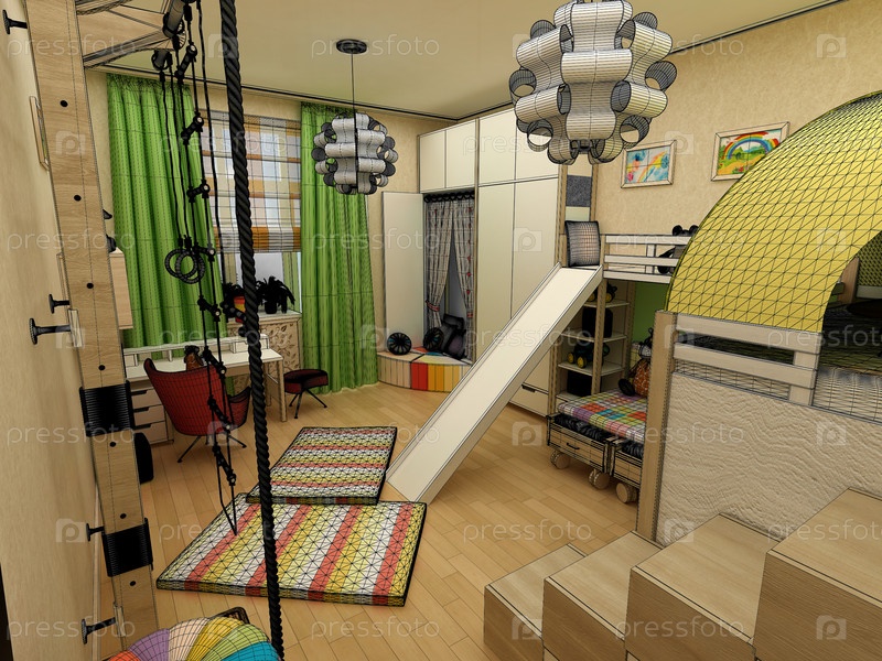 Визуализация - Детская комната с двумя кроватями