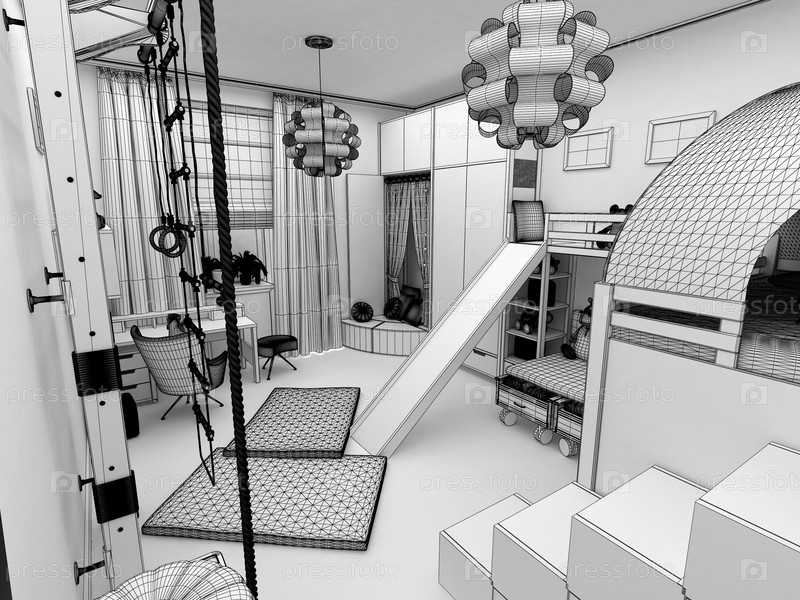 Визуализация - Детская комната с двумя кроватями