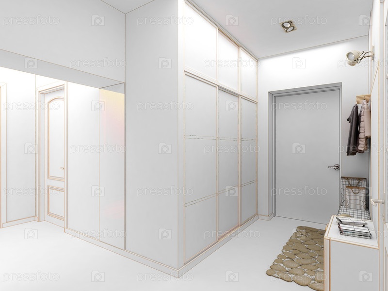 Современный дизайн интерьера зала, коридора. 3D визуализация