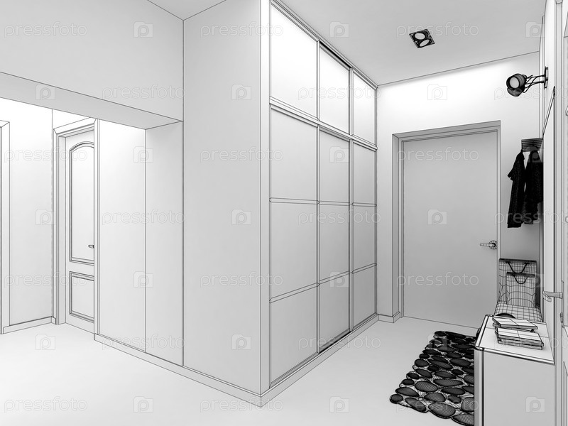 Современный дизайн интерьера зала, коридора. 3D визуализация