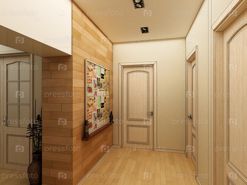 Современный дизайн интерьера зала, коридора. 3D визуализация