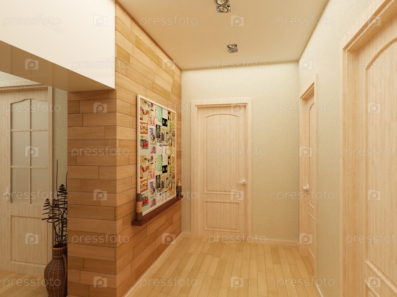 Современный дизайн интерьера зала, коридора. 3D визуализация