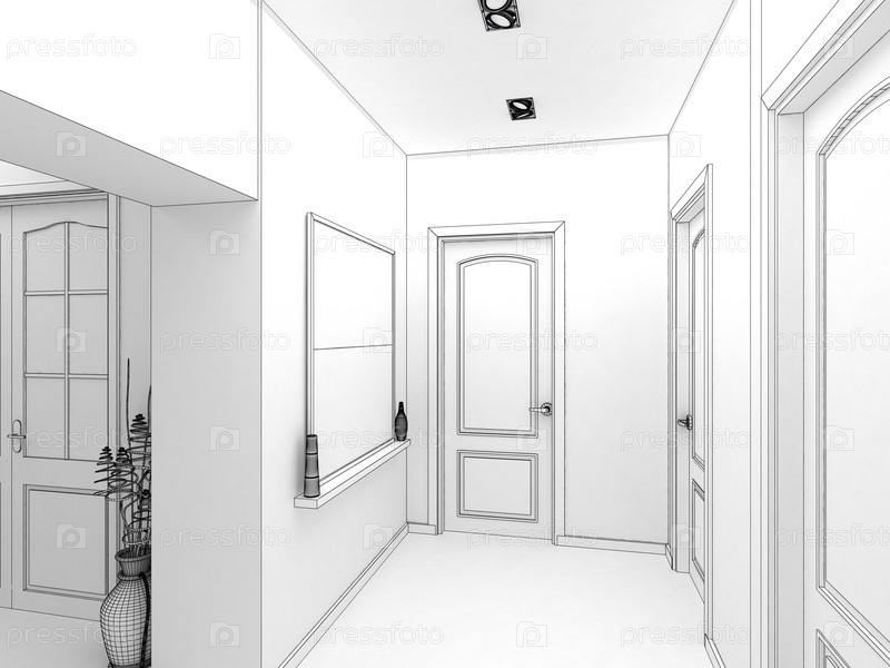 Современный дизайн интерьера зала, коридора. 3D визуализация