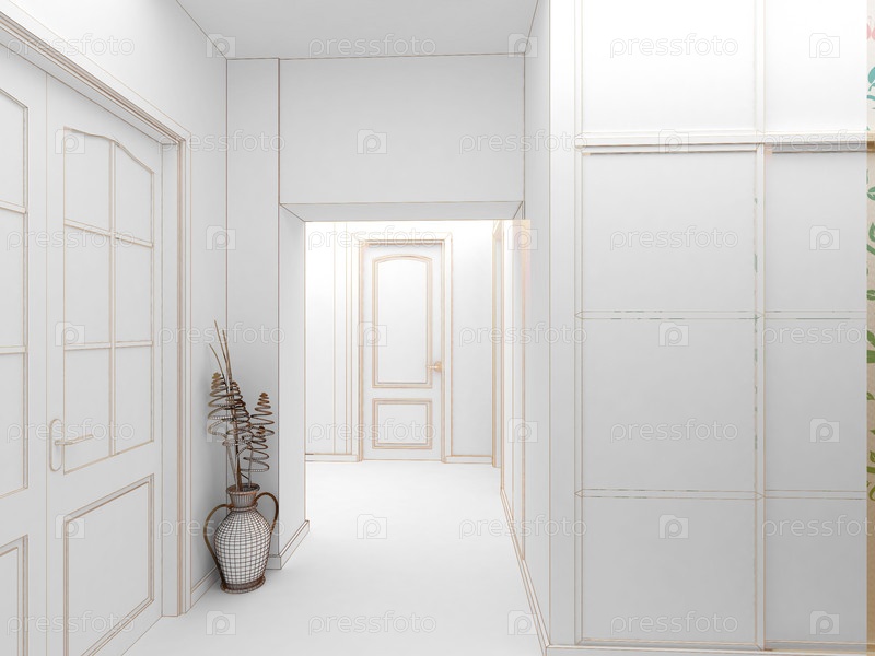 Современный дизайн интерьера зала, коридора. 3D визуализация