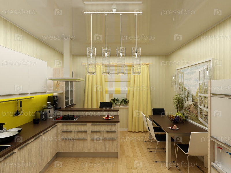 Концепция интерьера 3d желтая современная кухня