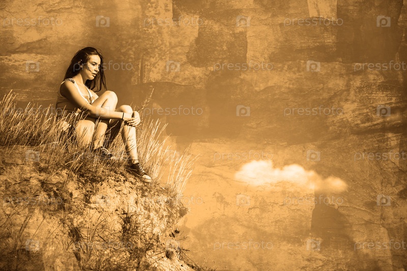 Женщина сидит на вершине