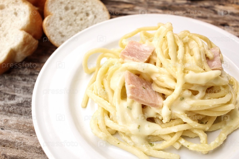 Спагетти Карбонара с французским багетом