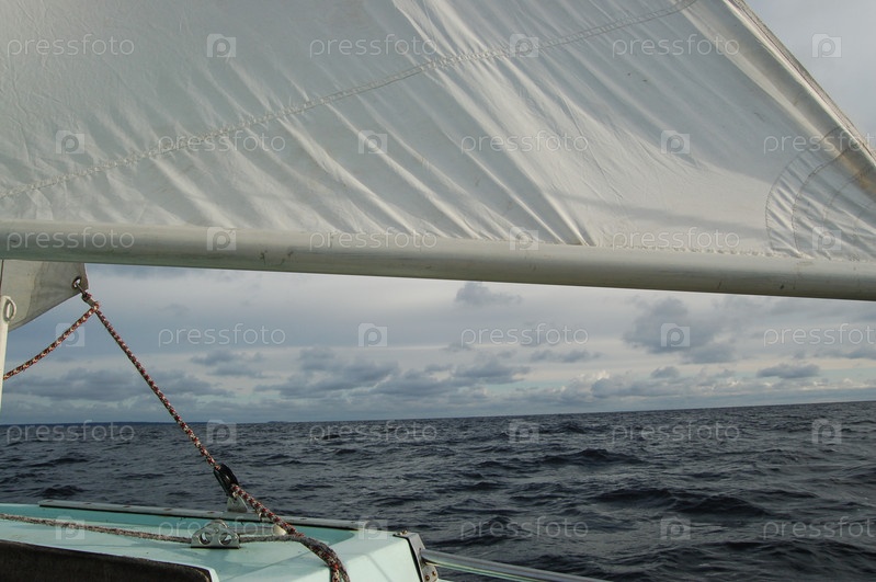 Яхта с белым парусом в море