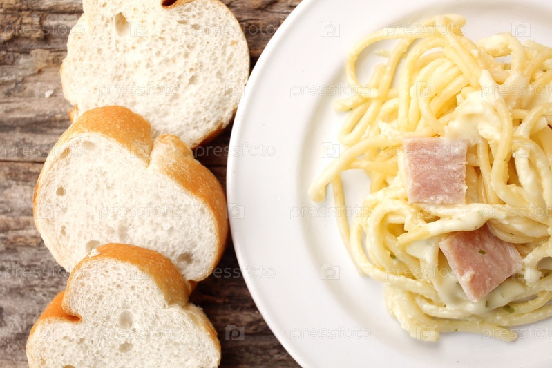 Спагетти Карбонара с французским багетом