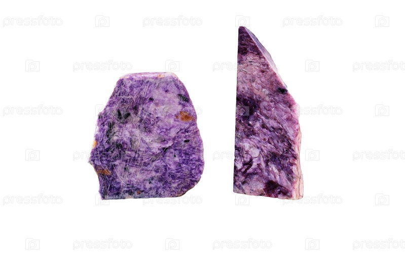 Два камня чароита на белом фоне