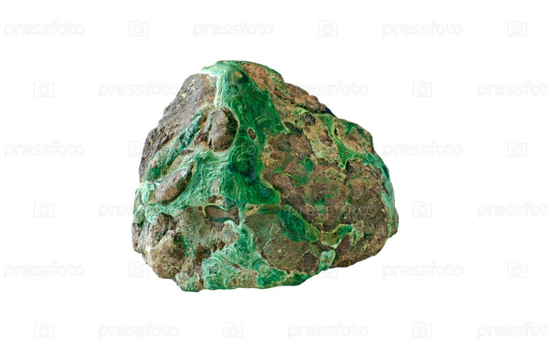 Малахитовый зеленый минерал на белом фоне