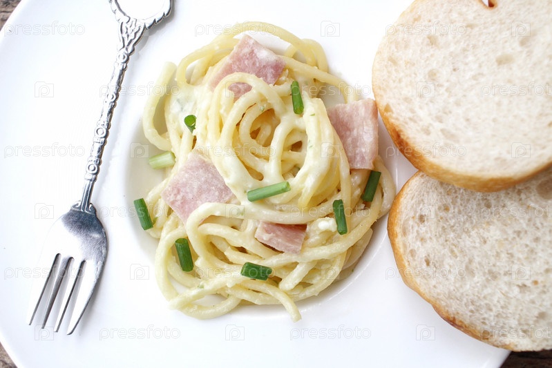Спагетти Карбонара с французским багетом