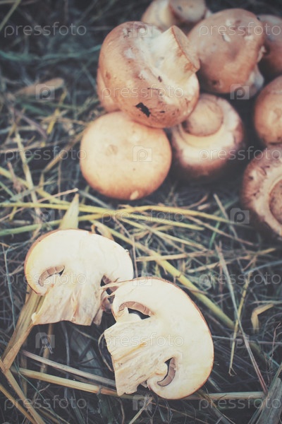 Грибы шампиньоны на сушеные травы