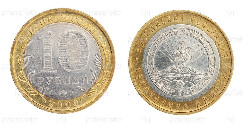 Юбилейная монета, десять рублей Республики Адыгея, изолированные на белом фоне