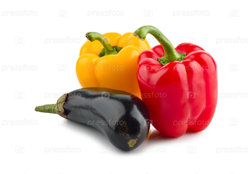 Баклажан и перец на белом фоне