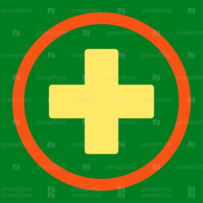 Плюс плоск оранжевый и желтый цвета округлые растровых значок
