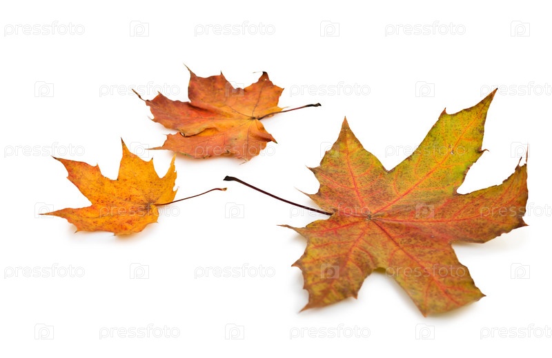 Осенние сухие кленовые листья на белом фоне