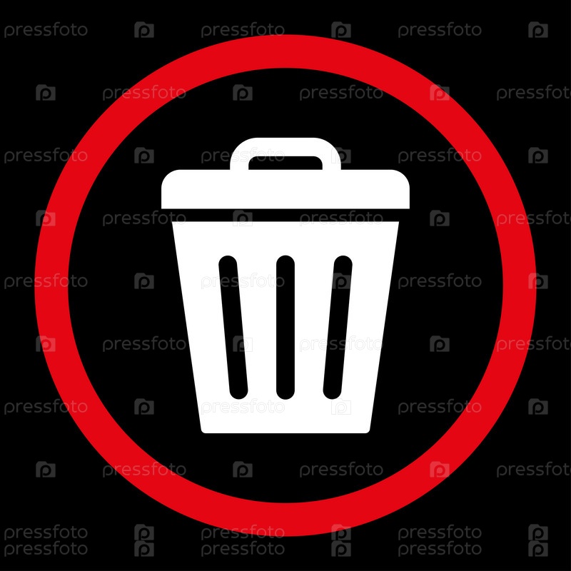 Мусор может плоск красный и белый цвета, округлые растровых значок