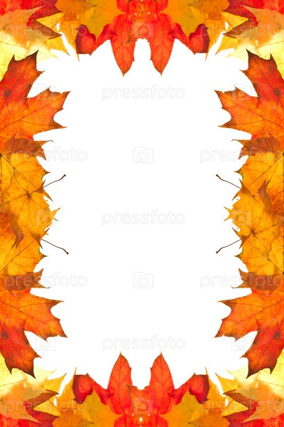 Рамка из осенних кленовых листьев на белом фоне