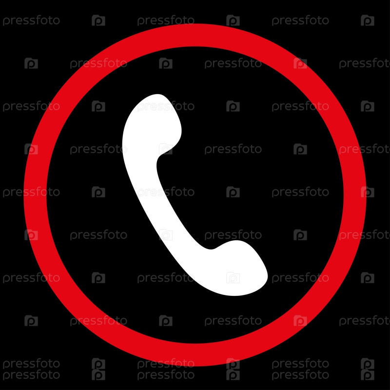 Округлые растровых значок телефона плоский красный и белый цвета