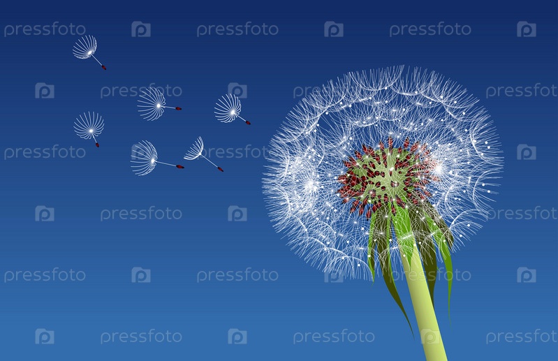 Одуванчик семена ветром в голубое небо