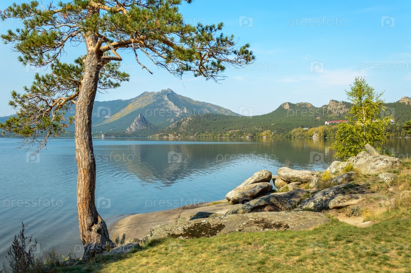 Сосна на фоне озера, Боровое