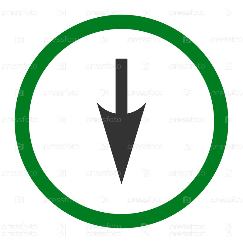 Резко вниз стрелка плоский зеленый и серый цвета