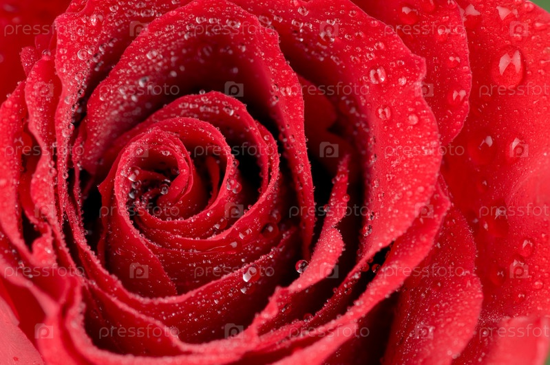 Макрофото красной розы с каплями воды
