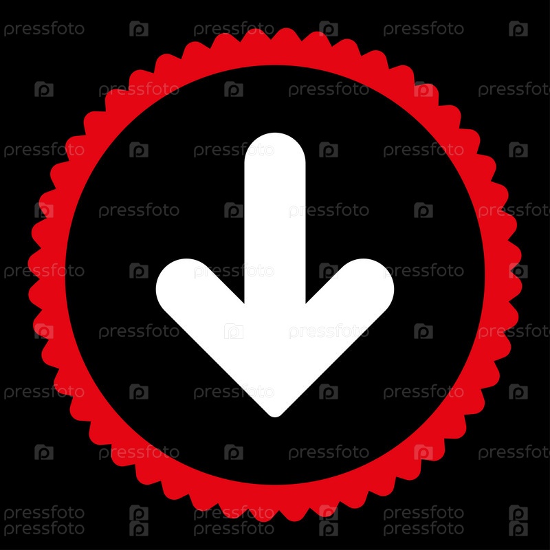 Стрелка вниз плоский красный и белый цвета круглый значок печати