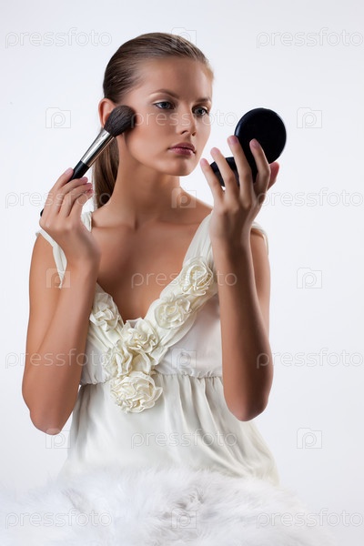Молодая женщина применения косметики