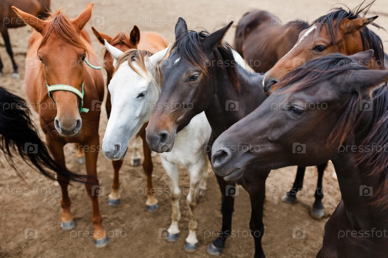 Табун лошадей в конюшне