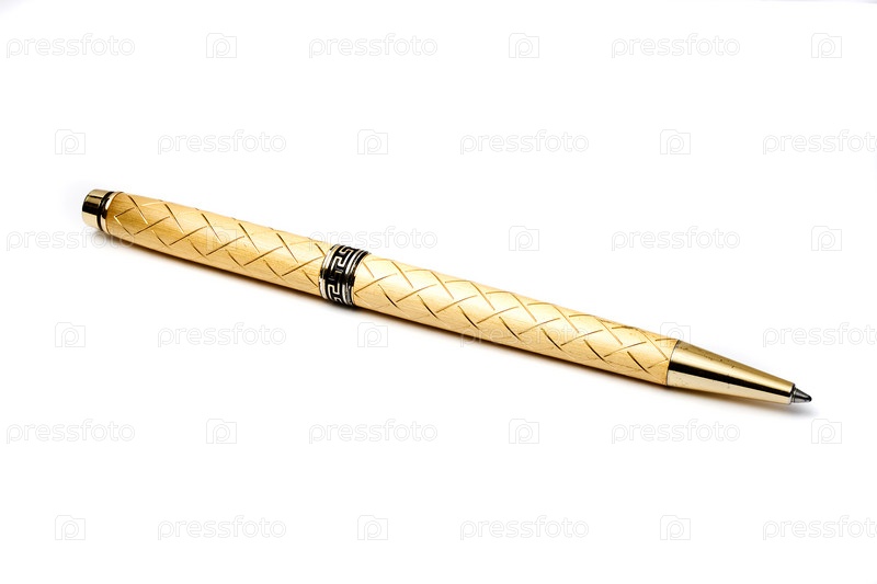 Золотая шариковая ручка на белом фоне