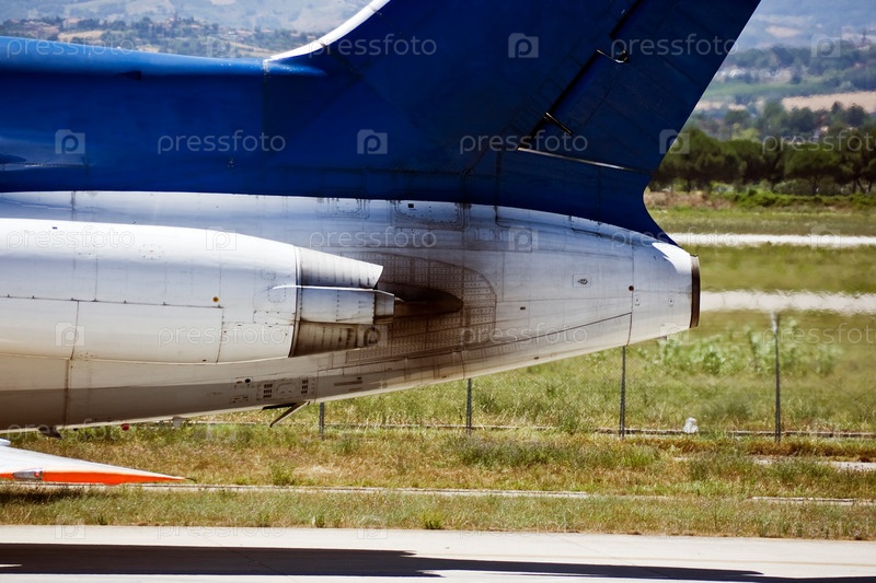 Реактивный двигатель российского самолета. Аэропорт. Римини
