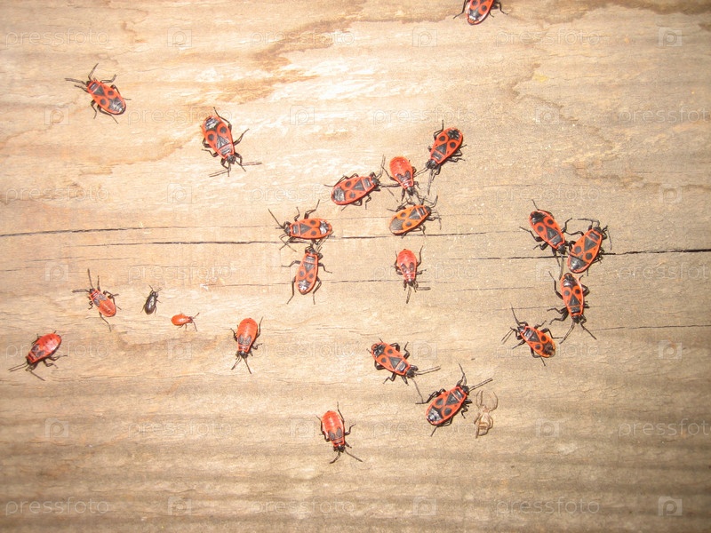 Жуки-пожарники на деревянном полу