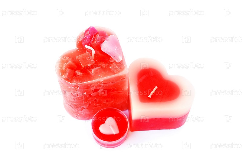 Свечи в форме сердца на белом фоне
